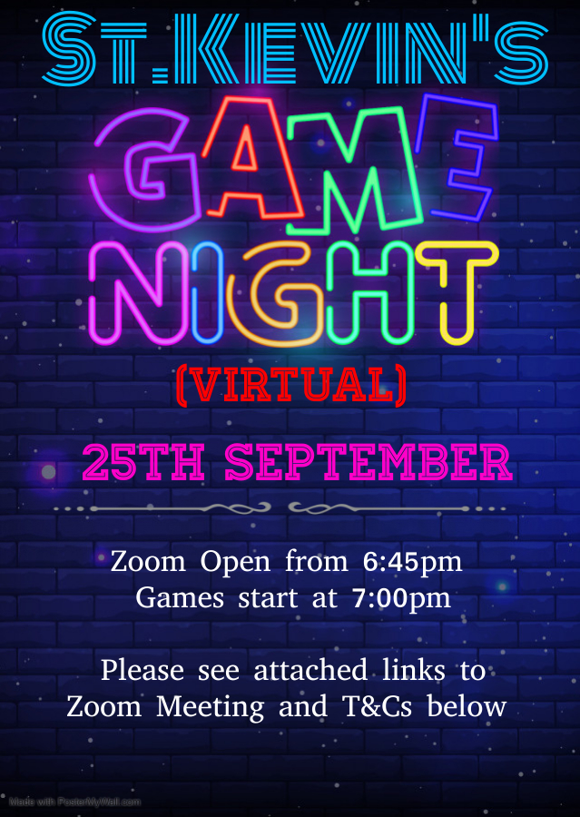 Come join us for a fun-filled, family-friendly virtual St. Kevin’s Game Night! Bring your families along and participate in a group game or two, share a laugh and see familiar faces from the parish that you haven’t seen in ages! What games are we going to be playing, you ask? Come find out on 25th Sept @ 6:45 PM via the Zoom link below. We promise you won’t regret it!