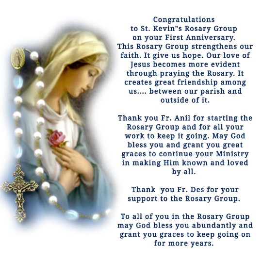 One thought on “Congratulations to the St Kevin’s Rosary Group on your 1st Anniversary!