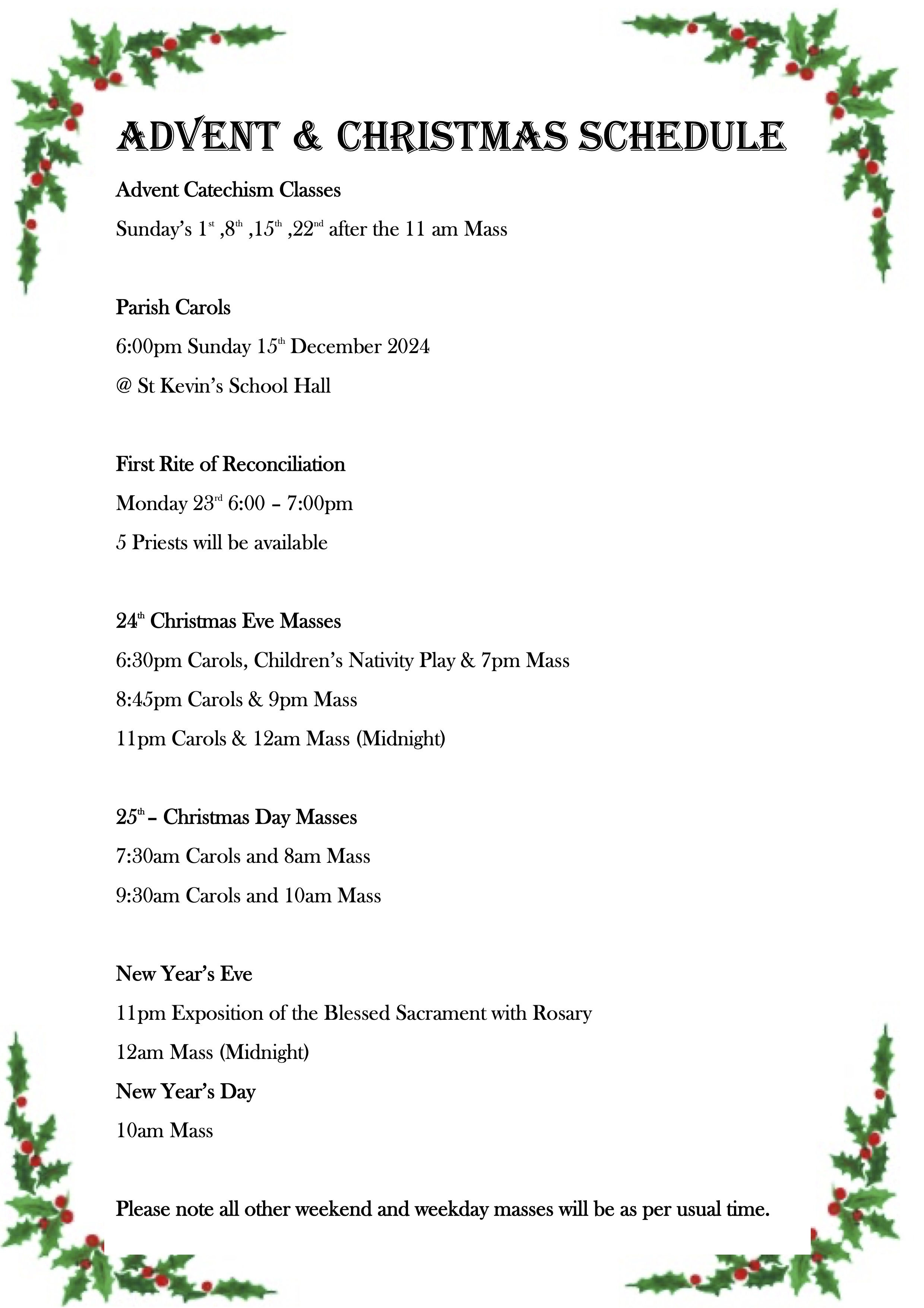 Advent & Christmas Schedule 2024 Share this: Click to email a link to a friend (Opens in new window) Email Click to print (Opens in new window) Print TweetLike Loading... Related