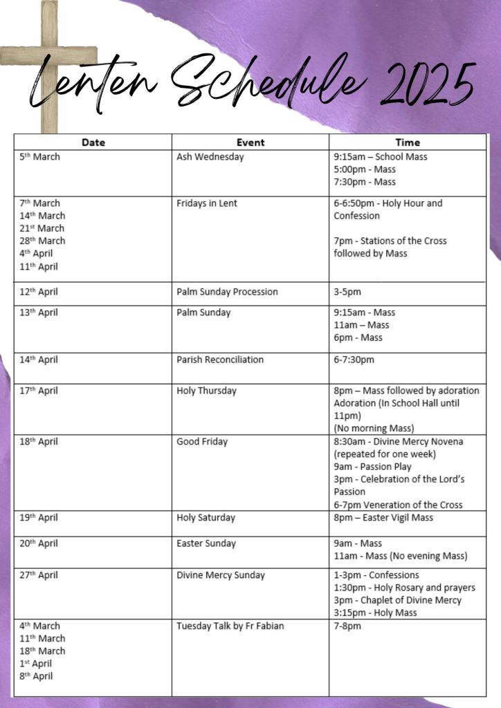 Lenten Schedule for 2025 Share this: Click to email a link to a friend (Opens in new window) Email Click to print (Opens in new window) Print TweetLike Loading... Related